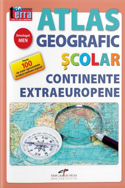 Atlasul este deosebit de util elevilor, dar si celor pasionati de geografie. Contine peste 30 de harti realizate digital ale tarilor extraeuropene si texte cu informatii din domeniul cartografiei.