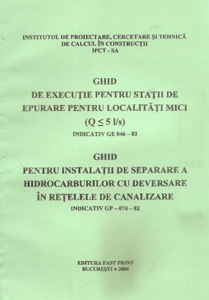 Descriere GE 046-02. Ghid de executie pentru statii de epurare pentru localitati mici (Q<5 l/s). Normativ GP 074-02. Ghid pentru instalatii de...