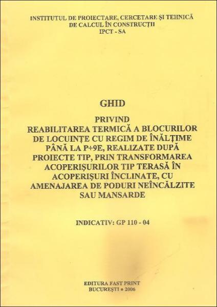 GP 110-04. Ghid privind reabilitarea termica a blocurilor de locuinte cu regim de inaltime pana la P+9E, realizate dupa proiecte tip, prin transformarea acoperisurilor tip terasa in acoperisuri inclinate, cu amenajarea de poduri neincalzite sau mansarde.