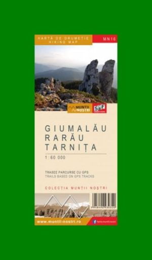 MN16. Harta de drumetie Muntii Giumalau, Rarau, Tarnita. Scara 1:60000. Trasee parcurse cu GPS.