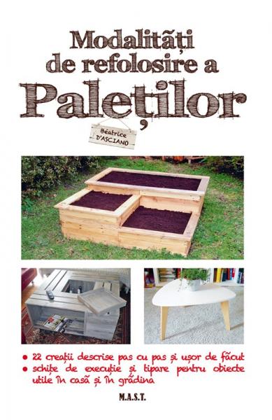 Autoarea Beatrice d`Asciano, pasionata de decoratiuni si de bricolaj, creatoarea blogului Blog de Bea cu peste 965.000 de vizitatori, va introduce intr-o activitate ce imbina practica cu creativitatea dar si cu savoarea unor mici trucuri care vin sa completeze ansamblul lucrului care sa ne placa, nu doar pentru ca a iesit din mainile noastre. Veti afla de unde si cum pot fi procurati paletii, cum trebuie sa fie demontati, cum trebuie finisate scandurile obtinute. Cu ele veti putea construi apoi cele 22 de piese pe care vi le propune cartea de fata.